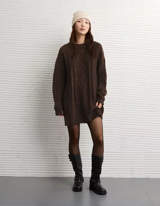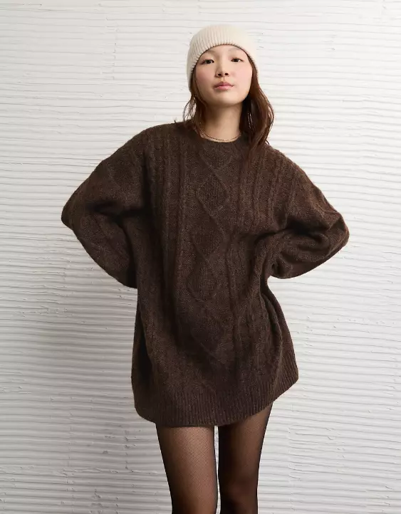 AE Oversized Cable Knit Sweater Dress